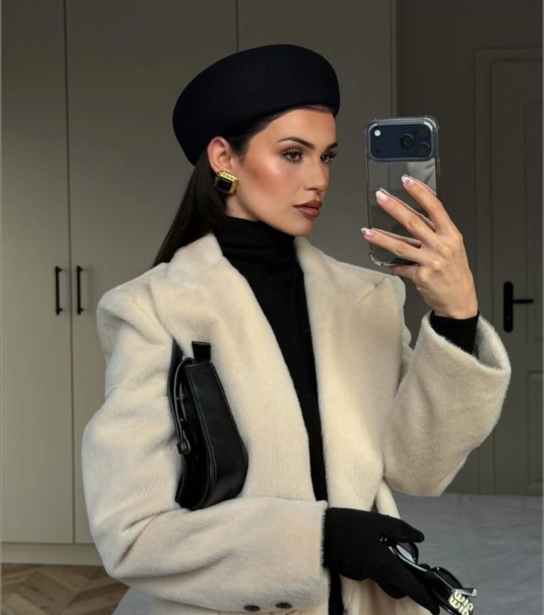 В центре внимания оказываются элегантные береты, которые мгновенно превращают повседневный образ в кинематографичный наряд в духе современного Парижа.
