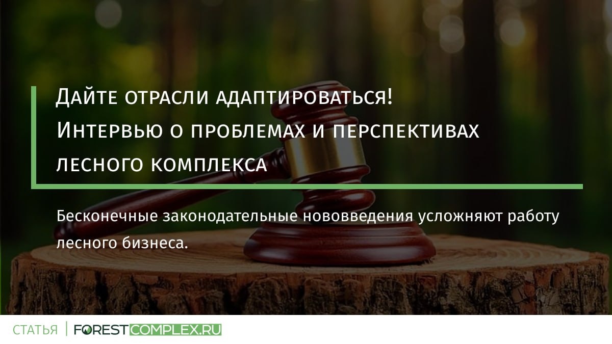 ? 🌳🌳 С середины 2010-х годов в отрасли идёт ряд реформ в области монополизации рынка лесоустройства и кадастровых работ, цифровизации лесного комплекса, охраны и воспроизводства лесов. В Лесной кодекс и подзаконные акты вносится столько корректировок, что лесопользователи не успевают за ними следить и приспосабливаться к новым условиям работы. 🌳 Автор и ведущий «Подкаста лесника», генеральный директор ООО «ЭкоЭстейт» Михаил Садетдинов рассказал в интервью «Лесному комплексу» о самых важных изменениях и дополнениях лесного законодательства за последний год. 🌳 Как усложняют работу лесного бизнеса бесконечные законодательные нововведения и что мешает лесопромышленникам и властям достичь баланса? Читайте в новой статье на forestcomplex.ru. #горячая_тема @Лесной комплекс forestcomplex.ru