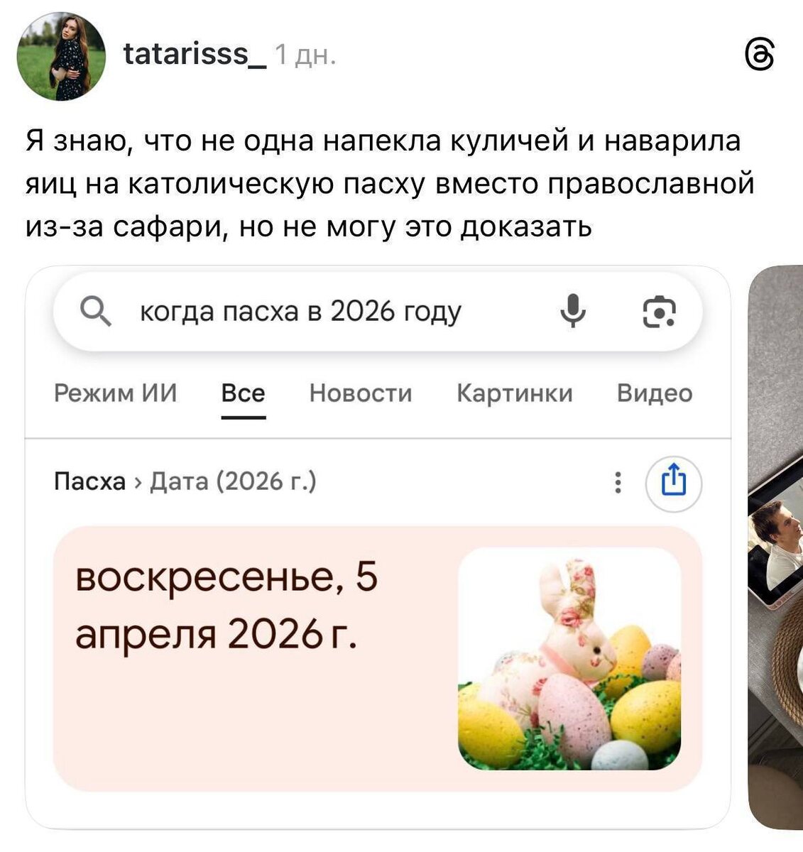 При запросе «когда Пасха в 2026 году» Google с включённым VPN показывал дату католической Пасхи — 5 апреля. Из-за этого часть пользователей перепутала её с православной. Православная Пасха в 2026 году приходится на 12 апреля. 📌 Подписаться на Москва FM / Наш чат-бот / Мы в MAX