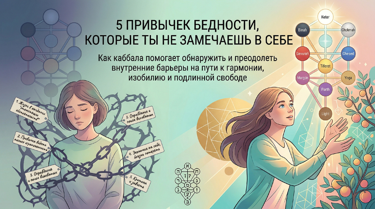 На языке каббалы это — внутренние ограничители, образы мышления, которые закладывают сценарии для будущего. Эти “программы” мы впитали с детства: что видели, слышали и как реагировали взрослые вокруг. Нас растили во времена, когда считалось, что бедность — это почти добродетель, скромность заменяет амбиции, а желание большего — странный каприз. Но сегодня эти устаревшие схемы оборачиваются тем, что мы становимся заложниками старых стереотипов, которые поигрывают нами, как шахматист любителем.