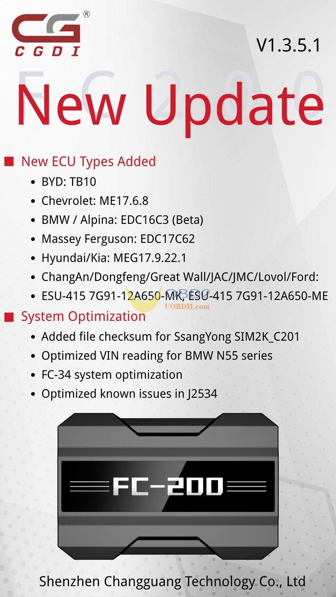 Обновление CGDI FC200 V1.3.5.1: новые типы ЭБУ и оптимизация системы