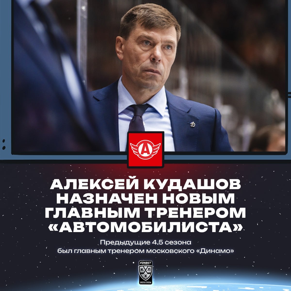 «Автомобилист» заключил двухлетний контракт с новым главным тренером Алексеем Кудашовым 🚗