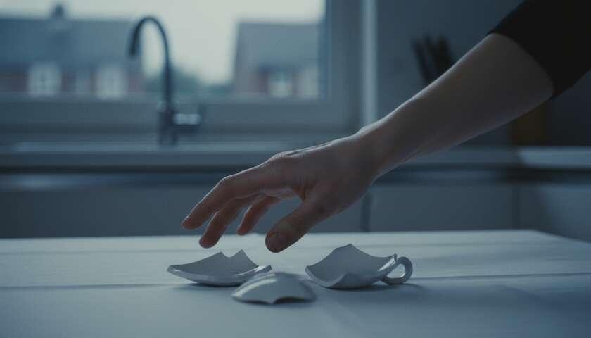 Фарфор не разбился вдребезги с грохотом. Он просто треснул на три крупных, острых куска. Звук был сухим, как щелчок пальцами.