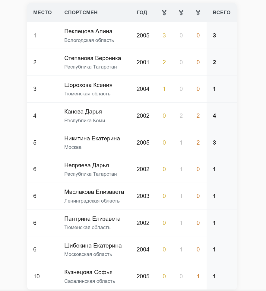 🥇 Медальный зачёт