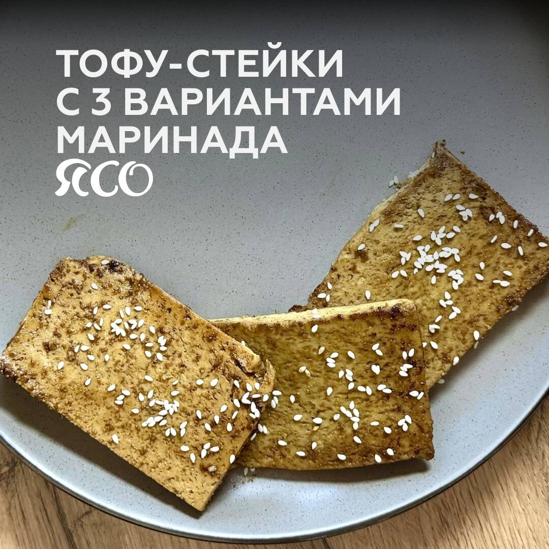 Продукты: Тофу — 360 г Маринад 1 (азиатский): Соевый соус — 2 ст. л. Чеснок сушеный— 1 зубчик Оливковое масло — 1 ст. л. Кунжут (по желанию) Фруктоза — щепотка Маринад 2 (сладко-пряный): Соевый соус — 1,5 ст. л. Фруктоза / сироп — 1 ст. л. Паприка — по вкусу Чеснок сушеный— 1 зубчик Оливковое масло — 1 ст. л. Маринад 3 (острый): Соевый соус — 2 ст. л. Чеснок сушеный— 1 зубчик Острый соус / чили — по вкусу Паприка — по вкусу Оливковое масло — 1 ст. л. 1️⃣Нарежьте тофу на стейки или крупные кусочки. 2️⃣Смешайте ингредиенты для выбранного маринада и залейте тофу. Оставьте на 5–10 минут. 3️⃣Обжарьте на сковороде до золотистой корочки с двух сторон. 💡Совет: если есть время, то оставьте тофу в маринаде дольше (можно даже на ночь), вкус будет насыщеннее КБЖУ на 100 г (примерно): Б: 10–12 г Ж: 6–8 г У: 2–4 г 🤩ЯСО "Натуральный" на wb на ozon на сайте Приятного аппетита!