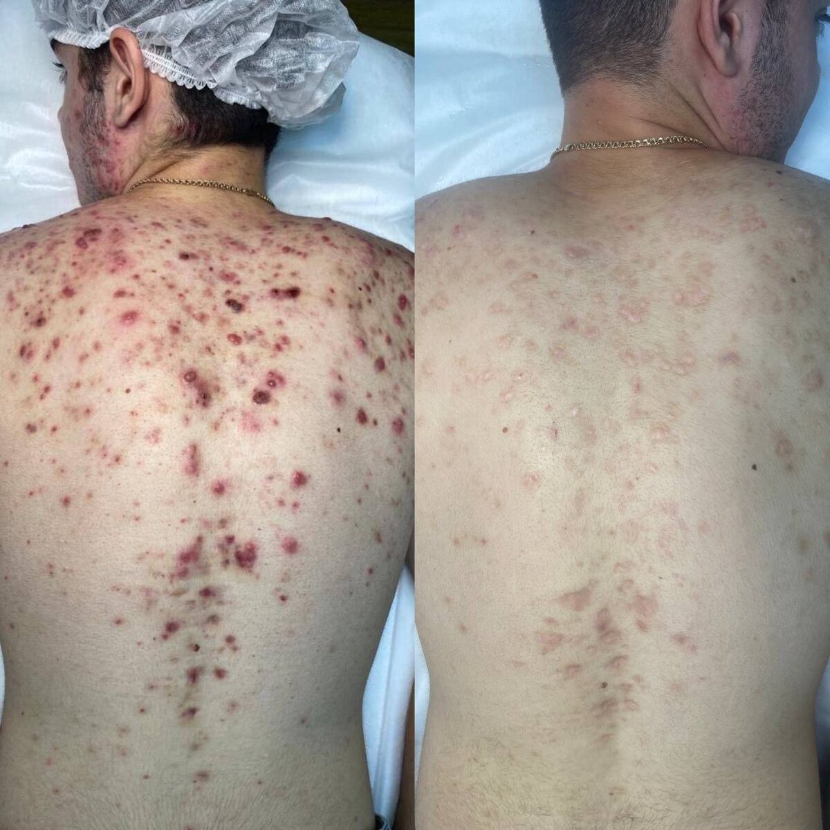 : — курс профессиональных пилингов — лазерная терапия — регулярные чистки лица — чистки спины Работа велась поэтапно, с учетом состояния кожи и реакции на каждую процедуру. Главная задача была снизить воспаление, предотвратить новые высыпания и постепенно восстановить качество кожи. Такие случаи не решаются быстро, но при правильном подходе результат обязательно есть. Как вам? Оцените в комментариях 👇🏻