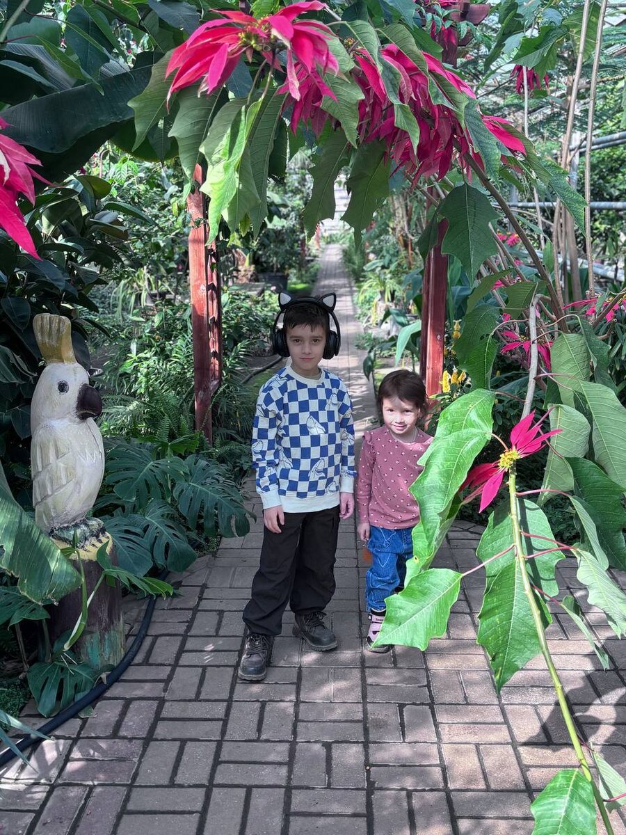 …🌞 Ходили в оранжерею и попали в джунгли. На самом деле уже несколько лет не могли попасть сюда, хотя расположена она недалеко от дома. Дети в восторге, да и мы с мужем тоже. Естественно без цветов не ушли, но мечта вырастить банановое дерево пока еще не осуществилась. 🤭 Здорово было увидеть вживую, как растет папайя, агава, магнолия, цитроны, мандарины, бананы, финики и многие другие растения. Если не грузит видео #doublemama