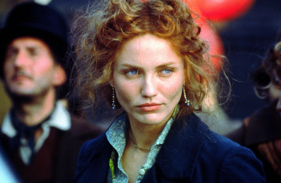 Справедливости ради, Диаз пришла на проект на подъёме: за плечами были серьёзные роли - "Быть Джоном Малковичем", "Ванильное небо" - и критики её хвалили. Только вот оба фильма были абсолютно современными - и по стилю, и по сеттингу. "Банды Нью-Йорка" - совсем другой зверь. Здесь актрисе нужно было перекраситься в рыжий и освоить шотландский акцент. Или ирландский? Честно говоря, почти весь фильм разобрать это невозможно. А чаще акцент просто испаряется сам по себе.