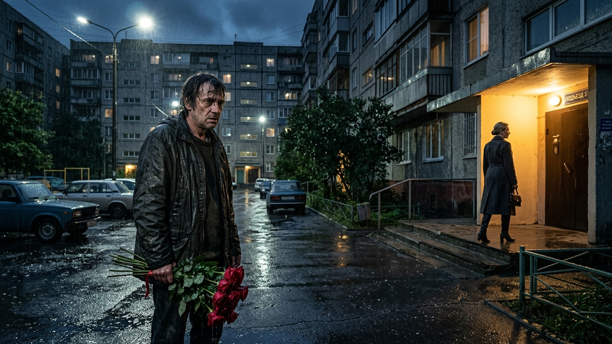 Игорь всё-таки попытался вернуться. Он сделал это максимально театрально - приехал с огромным букетом роз к её подъезду в субботу утром. Он стоял там, под дождем, в своей некогда дорогой куртке, которая теперь висела на нем мешком.