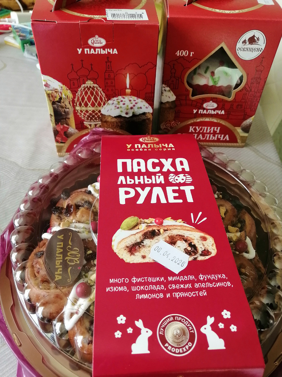 Я купила ей и себе взяла. Себе еще взяла рулет пасхальный . Никогда раньше такой не пробовала , на вид красивый , и цена у него красивая , почти 700 рублей стоит.