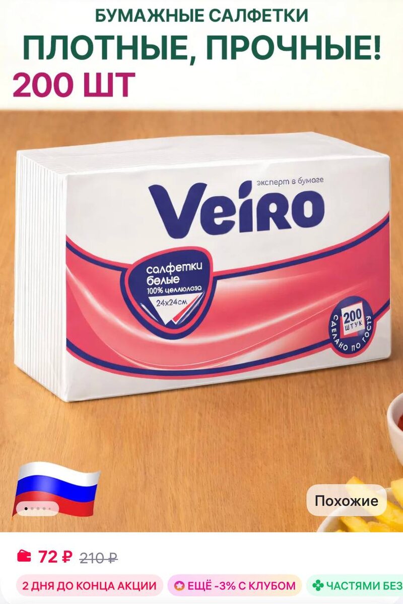GT Салфетки бумажные 200 шт