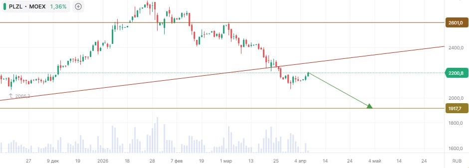 » Тикер: #PLZL Идея: Short ⬇️ Срок идеи: 3-4 недели Цель: 1917,7 руб. Потенциал идеи: 12,86% Объем входа: 8% Стоп-приказ: 2601 руб. 🧳 Технический анализ Актив находится в устойчивом восходящем тренде. При объеме позиции в 8% и выставлении стоп-заявки на уровне 2601 руб., риск на портфель составит 1,45%. Соотношение прибыль/риск составляет 0,71. ⛏ Фундаментальный фактор #Полюс — крупнейший производитель золота в России, входящий в новый цикл капитальных затрат. Несмотря на рост выручки за счет высокой цены на золото, объем производства снизился, а реализация упала. Общие денежные затраты взлетели на 93% до $739 на унцию, при этом нормализованный TCC (при прогнозных макропараметрах) находится в целевом диапазоне, но фактический рост затрат указывает на давление фискальной нагрузки и инфляции. Капитальные затраты достигли рекордных $2,2 млрд (+73%), из которых основная часть направлена на вскрышные работы и проекты развития. Свободный денежный поток остается под давлением из за пика ин