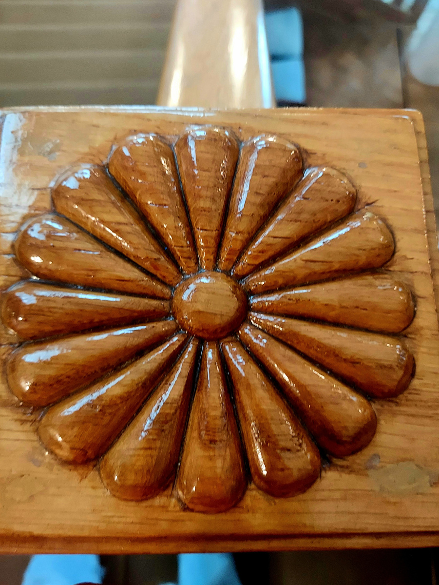 Столик выполнен в технике «маркетри». Маркетри – это деревянная мозаика, которую наклеивали на мебельный каркас в соответствии с эскизом, используя различные породы дерева.