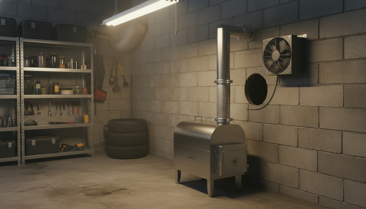 Самая частая ошибка — коптильня стоит «где место нашлось», а труба «как-нибудь» выходит в ворота или в щель. И вот тут важный принцип: если дым сначала оказался в гараже, а потом вы пытаетесь его выгнать — вы уже проиграли. Запах успевает впитаться в потолок, стеллажи, тряпки, резину и картон.