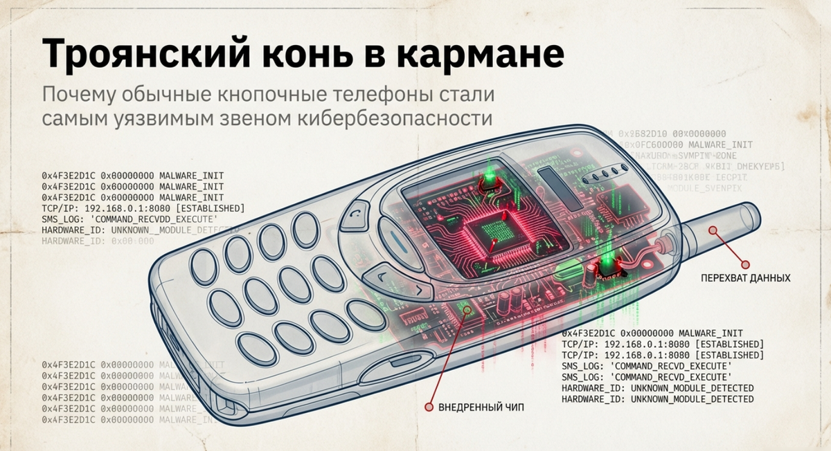 Старый конь борозды не испортит, если в нем троян не живет. Многие думают, что старая добрая «звонилка» — это неприступная крепость, где нет места хакерам. Мол, это в ваших «интернетах» смартфоны чихают, а мой «кирпич» — кремень! Но не тут-то было. Даже верный кнопочный друг может внезапно «засопливить», начав жить своей, весьма подозрительной жизнью. В былые времена зараза проникала через J2ME (Java) приложения. Скачал игру «Ну, погоди!», а она под шумок шлет SMS на платные номера. Но нынешние злодеи стали хитрее. Теперь им даже не нужно, чтобы вы что-то качали. Мал золотник, да с вирусом: современные исследования показали, что вредоносное ПО встраивают прямо в прошивку на этапе производства. Телефон еще в коробке на полке магазина лежит, а «червоточина» в нем уже ждет своего часа. Как только вставляете SIM-карту, аппарат без вашего ведома может выйти в интернет или отправить «приветственное» сообщение на секретный номер. Основные «болячки» кнопочников делятся на три типа: Как понять,