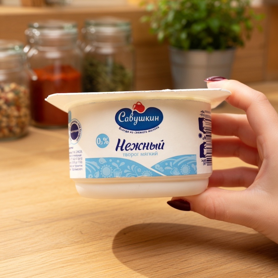 Я часто покупаю молочные продукты для перекусов, постоянно в поиске вкусных и полезных, особенно когда слежу за питанием или просто хочу что-то лёгкое и без лишних калорий. Обратила внимание на творог «Нежный» от бренда Савушкин. Упаковка небольшая – 125 грамм, есть варианты с разной жирностью: обезжиренный 0,1 % и 5 %. Решила попробовать, и с тех пор он довольно часто появляется у меня в холодильнике. Расскажу, что мне понравилось, а с чем пришлось смириться. Внешний вид и консистенция Открываешь баночку – и сразу видно, почему его назвали «Нежный». Консистенция действительно очень мягкая, кремовая, почти как густой йогурт или нежное суфле. Без крупных творожных зёрен, которые иногда раздражают в обычном зернистом твороге. Ложка легко погружается, масса однородная. Приятно есть просто так, ложкой из баночки. Для меня это большой плюс – не нужно ничего размешивать или протирать. Вкус и жирность Вкус натуральный, с лёгкой приятной кислинкой, без посторонних привкусов. Не пресный и не с