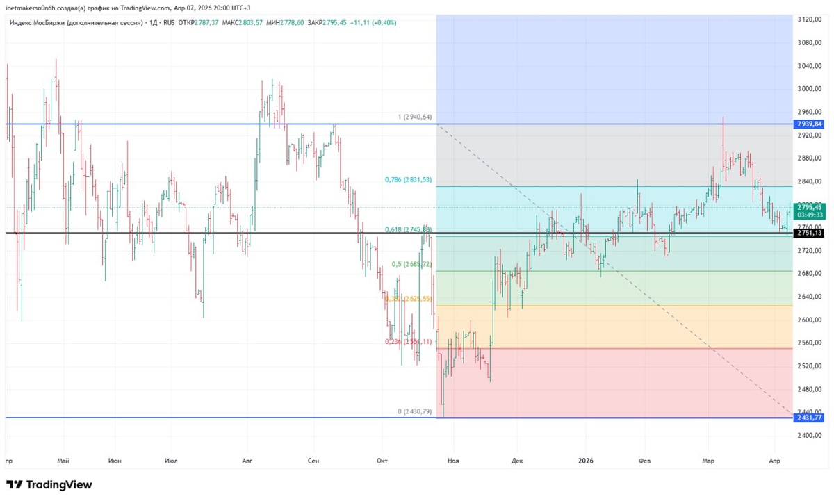 ❗️7 апреля российский фондовый рынок показал рост, индекс МосБиржи укрепился на 0,44% до уровня 2797,24