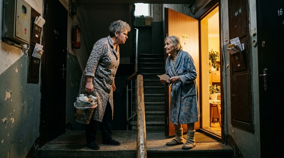 Валентина Петровна живёт в квартире напротив уже лет десять. Переехала после смерти мужа, одна, с двумя сумками и старым котом. С первого дня не понравилась мне. Знаете, бывает такое: человек ещё ничего не сделал, а ты уже раздражаешься. Шаркает тапками по лестничной клетке, подолгу стоит у окна, смотрит на улицу. Ходит медленно, опираясь на стену, но упрямо — сдаваться не привыкла. Заглянет в глазок, когда ты мусор выносишь. Прошепчет что-то под нос.