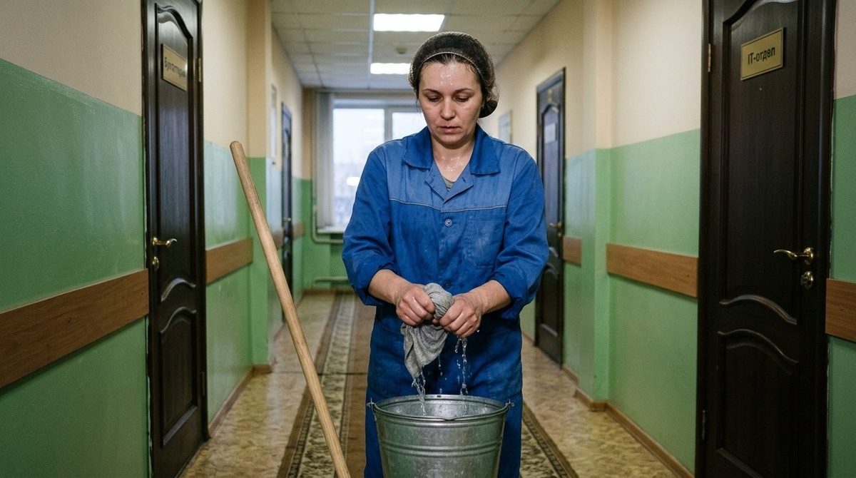 Ира выжимала тряпку. Вода текла по рукам, холодная и липкая. Стекала в ведро с лёгким плеском. Она выпрямилась, провела ладонью по липкому от пота лбу, ощущая солёный привкус на губах. Шесть утра. Коридор пахл хлоркой, пылью и тишиной. Тишиной пустого здания, которое ещё спит.