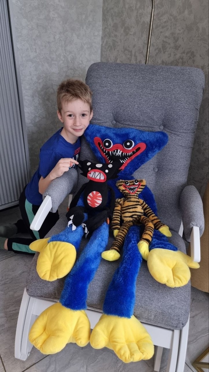 Подкупились после школы и ... Филька купил на ярмарке третьего монстрика🙈 и конечно же с огрооомной дырой😁😁😁 Уже зашила и уже стирается это новое и супер крутое приобретение😅