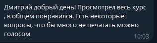 🫶 Недавно получил отзыв: «Дмитрий, добрый день! Просмотрел весь курс, в общем понравился. Есть некоторые вопросы, чтобы много не печатать, можно голосом?» Для меня это очень ценно 🙏 Потому что самый приятный момент - не просто когда человек купил курс, а когда он действительно его прошёл, вник, дошёл до вопросов и хочет разобраться глубже. Это значит, что материал не ушёл “в стол”, а реально изучается и применяется. И, честно, я всегда рад таким сообщениям. Когда есть вопросы после просмотра - это хорошо. Значит, человек думает, сопоставляет со своей торговлей и хочет не просто “послушать”, а понять. Так что если вы проходите курс и по ходу появляются вопросы - это нормально. Не нужно копить их или думать, что они “глупые”. Наоборот, именно через такие вопросы обычно и приходит самое важное понимание. А еще - мы очень много тем разбираем в закрытом клубе "Платина", что позволяет пройти максимально эффективно практическую часть. Спасибо всем за доверие 🙌 Очень приятно видеть,