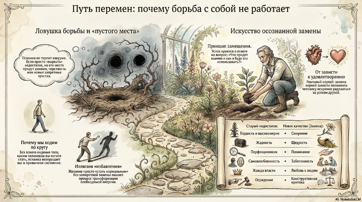Как избавиться от недостатка характера. Как развить в себе хороший навык. Путь изменений лежит через замену, а не борьбу.