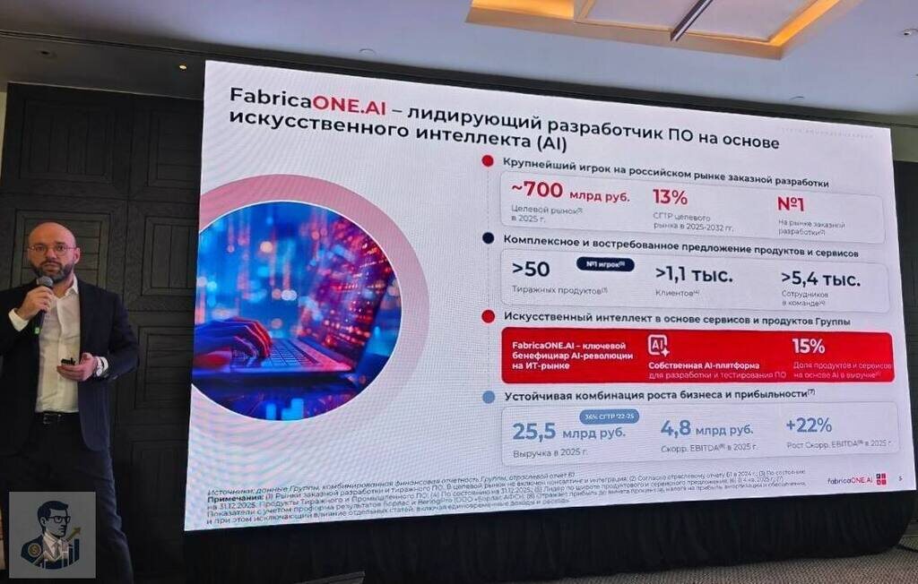 Речь пойдёт о чём-то стильном, модном и технологичном. FabricАONE.AI — российский разработчик ПО на базе ИИ, который строит вертикально-интегрированную модель: от консалтинга и стратегии до внедрения, поддержки и собственных продуктов. Компания работает с крупным бизнесом и госсектором: промышленность, финансы, ретейл. Внедряют ИИ «по-взрослому», а не продают «витринные» кейсы. 🔸 Ключевая идея Продавать не отдельные услуги, а конечный результат для заказчика: — стратегия и консалтинг — разработка (заказная и тиражная) — внедрение и интеграция — поддержка и обучение Всё внутри одной группы. И всё — с поддержкой технологий ИИ, которые помогают сокращать время разработки и стоимость для клиента, а значит — повышать маржинальность бизнеса. 🔸 Рост за счёт структурных факторов По оценкам Б1: — заказная разработка — 164 млрд руб. — тиражное ПО — 533 млрд руб. Оба сегмента растут двузначными темпами. Цифровизация экономики неизбежна. Ещё один драйвер — огромный запрос бизнеса на ИИ. Ко