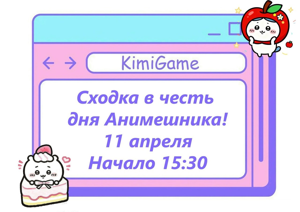 !🐾 🎉✨Аниме-сходка 🎉✨ 📅 Когда: 11 апреля. Начало в 15.30 📍 Где: KimiGame, адрес Волжская 27А, вход через Кимито Что приготовили для праздничного настроения? ❣️Море чая, печенок и конфет абсолютно бесплатно ❣️Викторины и конкурсы проверим ваши знания аниме и манги ❣️Игры и настолки собираем команды, рубимся в любимые тайтлы и просто весело проводим время. ❣️Дружеский вайб приходите сами или с компанией, у нас тут все свои! ❣️ПРАЙС: В этот день отдыхаем по игровому тарифу, но мы подготовили супер-выгодное предложение: БЕЗЛИМИТ на весь день всего 500 рублей! А по карте постоянного гостя всего 450 рублей!🥳 ❣️СПЕЦИАЛЬНЫЕ БОНУСЫ: Придёшь в косплее? Забирай скидку 5% на покупки в магазине KimiTo! 😋 Проголодался? Для всех участников сходки действует скидка 30% на еду и напитки в магазине!