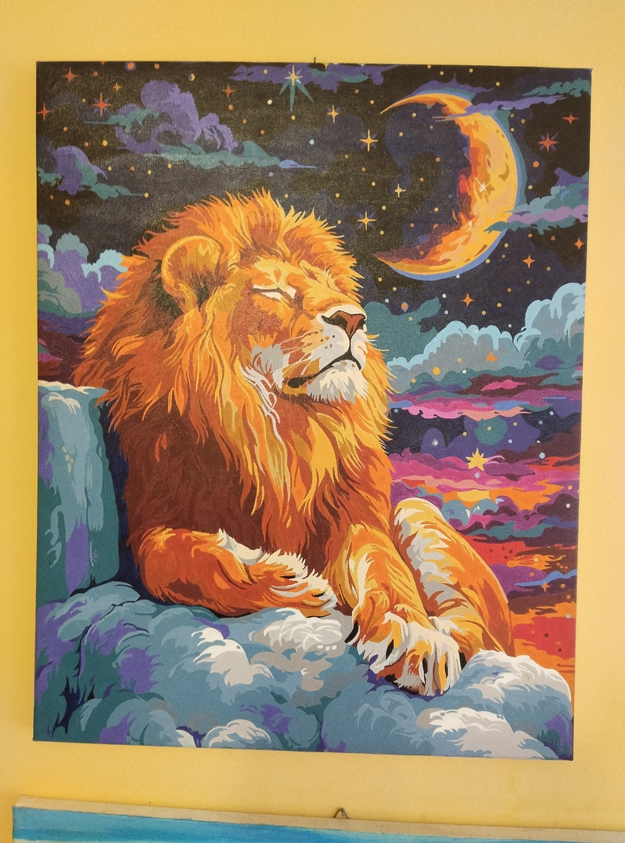 Дорисовал сейчас картину со львом, покрыл её лаком. Нехватает теперь только багета и рамки, но это деньги 💰 для меня большие уже, поэтому можно