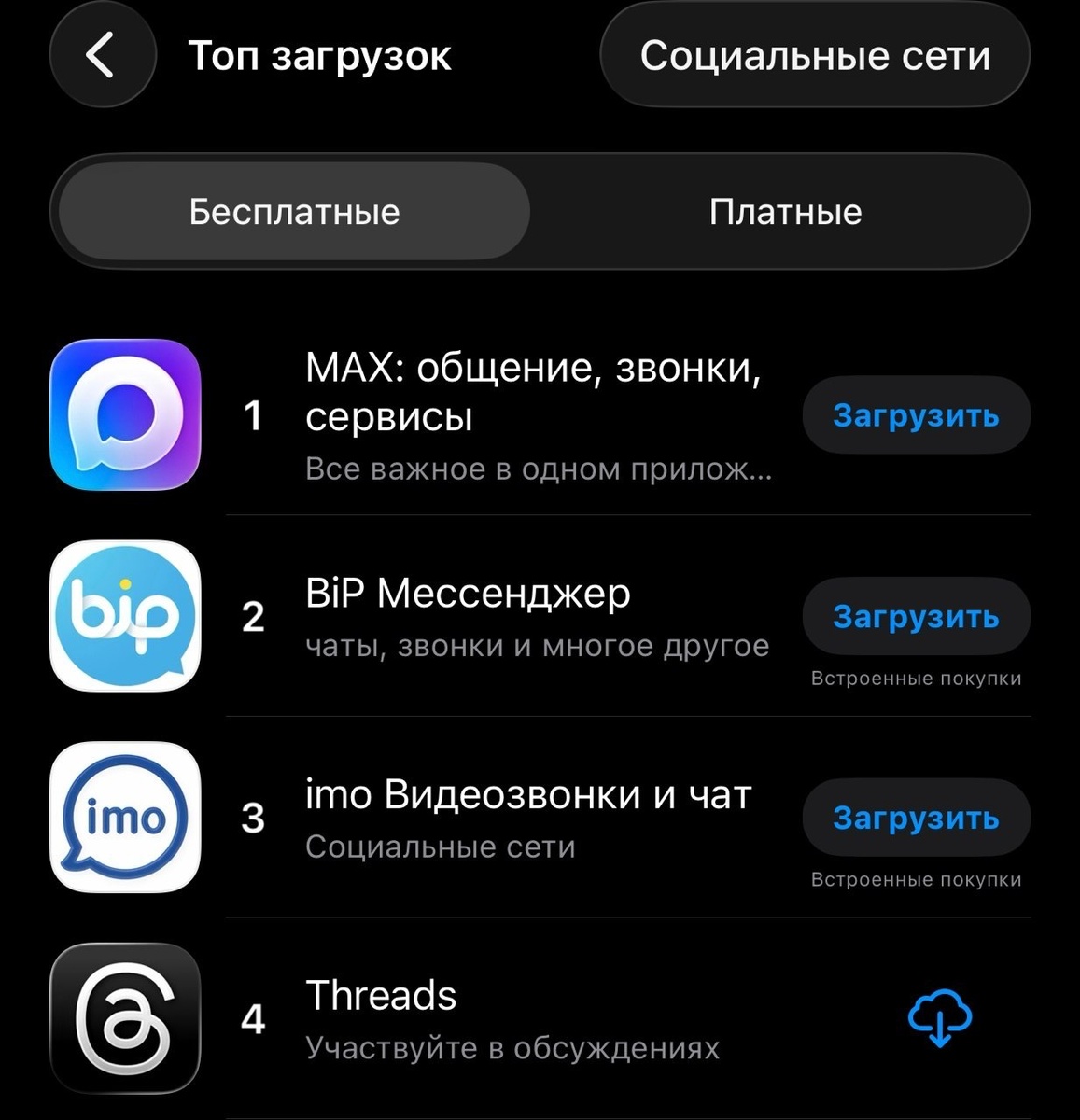 Турецкий мессенджер BiP поднялся на вторую строчку в российском App Store