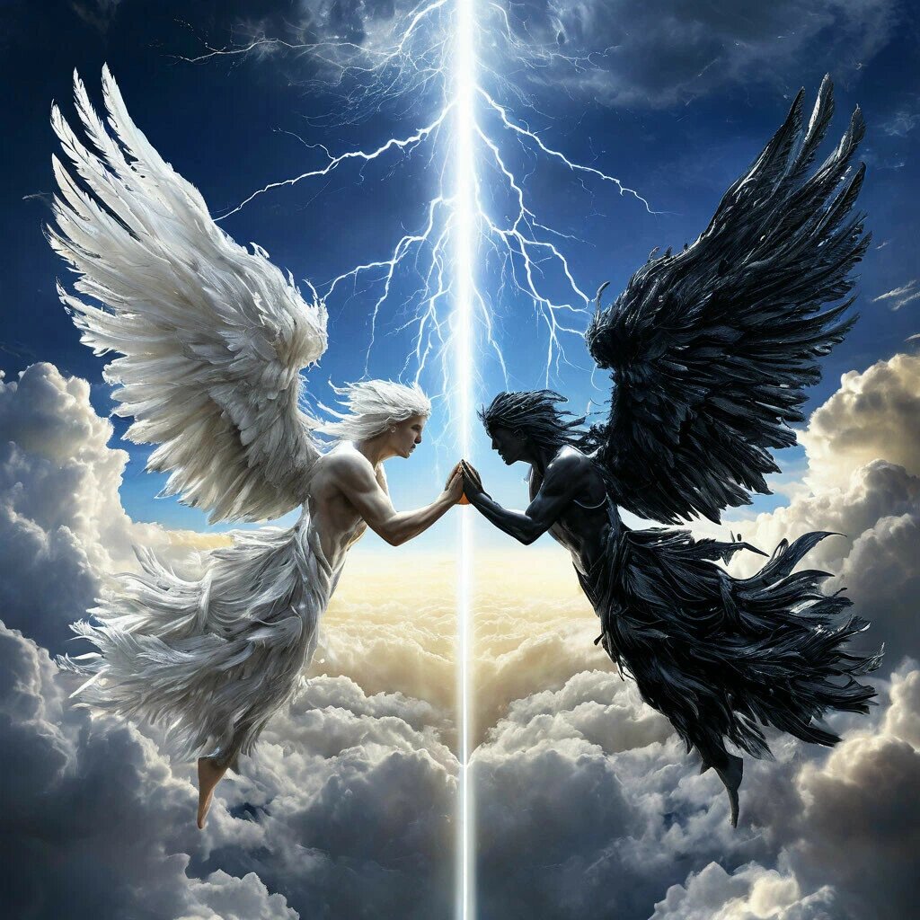 Белый и чёрный Ангелы это образное проявление иньской Ида (женская) и янской Пингала (мужская) энергии, которые в совокупности образуют Сушумну, проходящую через позвоночный столб. Поэтому два Ангела всегда с нами. Их гармоничное воссоединение с Анахата-чакрой, образующее конгломерат, содержащий два крыла по плечам и сердце, образуют Троицу. Это и есть явление Христосознания в каждом индивидууме. Так, что не стоит ждать второго пришествия Христа физически. Он придёт к каждому индивидуально по мере раскрытия сердечной чакры, признания единства Тени и Света в собственной сути. Христос в каждом из нас. Два наших Ангела с нетерпением ждут этого момента.