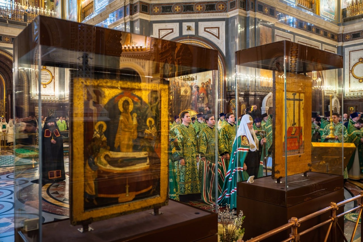 Вход Господень в Иерусалим. Литургия 🌿 5 апреля 2026 года, в Неделю 6-ю, ваий (цветоносная, Вербное воскресенье), праздник Входа Господня в Иерусалим, Святейший Патриарх Московский и всея Руси Кирилл совершил Божественную литургию святителя Иоанна Златоуста в кафедральном соборном Храме Христа Спасителя в Москве. Указом Святейшего Патриарха Кирилла за усердное служение Святой Церкви ряд клириков храмов Московской (городской) епархии, Патриарших подворий, ставропигиальных приходов и монастырей, синодальных отделов и Московских духовных школ к празднику Святой Пасхи были удостоены следующих богослужебно-иерархических наград, в том числе клирики викариатства Новых территорий г. Москвы. 💒 Права служения Божественной литургии с отверстыми царскими вратами по «Отче наш» удостоены: 🌿протоиерей Сергий Гуданов, настоятель храма Живоначальной Троицы в поселке Мосрентген г. Москвы; 🌿протоиерей Елевферий Колодезный, настоятель храма благоверного князя Александра Невского в Пыхтине г. Москвы