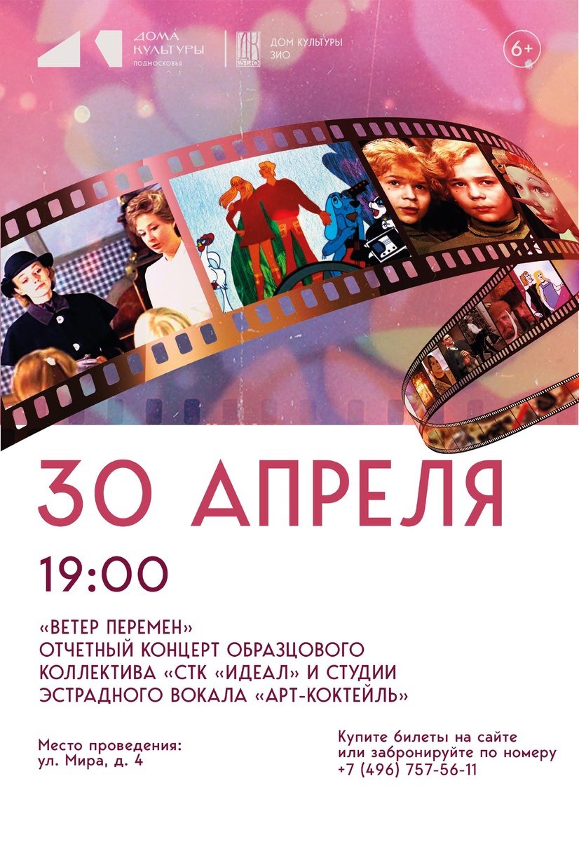 ! 30 апреля в 19:00 Дом культуры ЗИО приглашает на яркий финал творческого сезона — отчётный концерт «Ветер перемен». В программе примут участие два прославленных коллектива. ✨ Образцовый коллектив «СТК «Идеал» подарит зрителям зажигательные танцевальные номера: от классической европейской программы до страстной латины 🎤 Студия эстрадного вокала «Арт-Коктейль» порадует проникновенными и энергичными песнями 🎭 Вместе они создадут настоящий праздник музыки, ритма и вдохновения Вход: 300 рублей 🎫 Билеты можно приобрести по ссылке https://clck.ru/3SyS8b или в кассе ДК ЗИО перед началом мероприятия Не пропустите завершение сезона — приходите поддержать наших артистов! #ДКЗИО #ВетерПеремен #Идеал #АртКоктейль #ОтчётныйКонцерт #Подольск