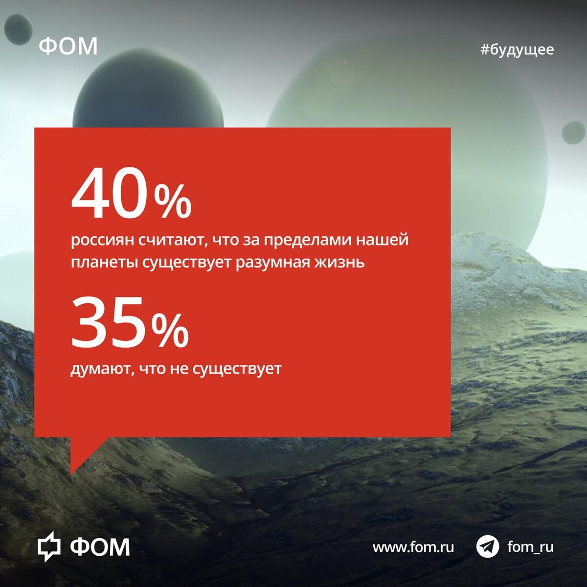 Если говорить о будущем, то 17% респондентов верят, что в ближайшие 50 лет состоится контакт внеземных цивилизаций с людьми, 21% опрошенных так не думают. Если такой контакт состоится, 18% опрошенных считают, что он принесёт людям больше пользы, а 12% полагают, что больше вреда. Подробнее: fom.ru #космос 📲 ФОМ в МАХ 💙 ФОМ в ВК 📱 Фонд Общественное Мнение