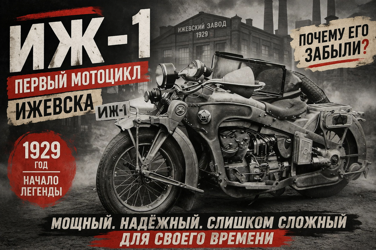 Всем привет, друзья. Сегодня поговорим о технике, с которой фактически началась история ижевских мотоциклов. Не «Планета», не «Юпитер», а куда более ранняя и почти забытая модель — ИЖ-1. Это не просто старый мотоцикл. Это один из первых серьёзных опытов создания отечественной мототехники в СССР. Причём опыт достаточно смелый — даже по мировым меркам конца 1920-х годов. В конце 1920-х годов Советский Союз активно развивал промышленность. Транспорт был необходим, а зависимость от импорта — крайне нежелательной. В 1928–1929 годах на Ижевском заводе стартовали работы над первыми мотоциклами. Руководил проектом инженер