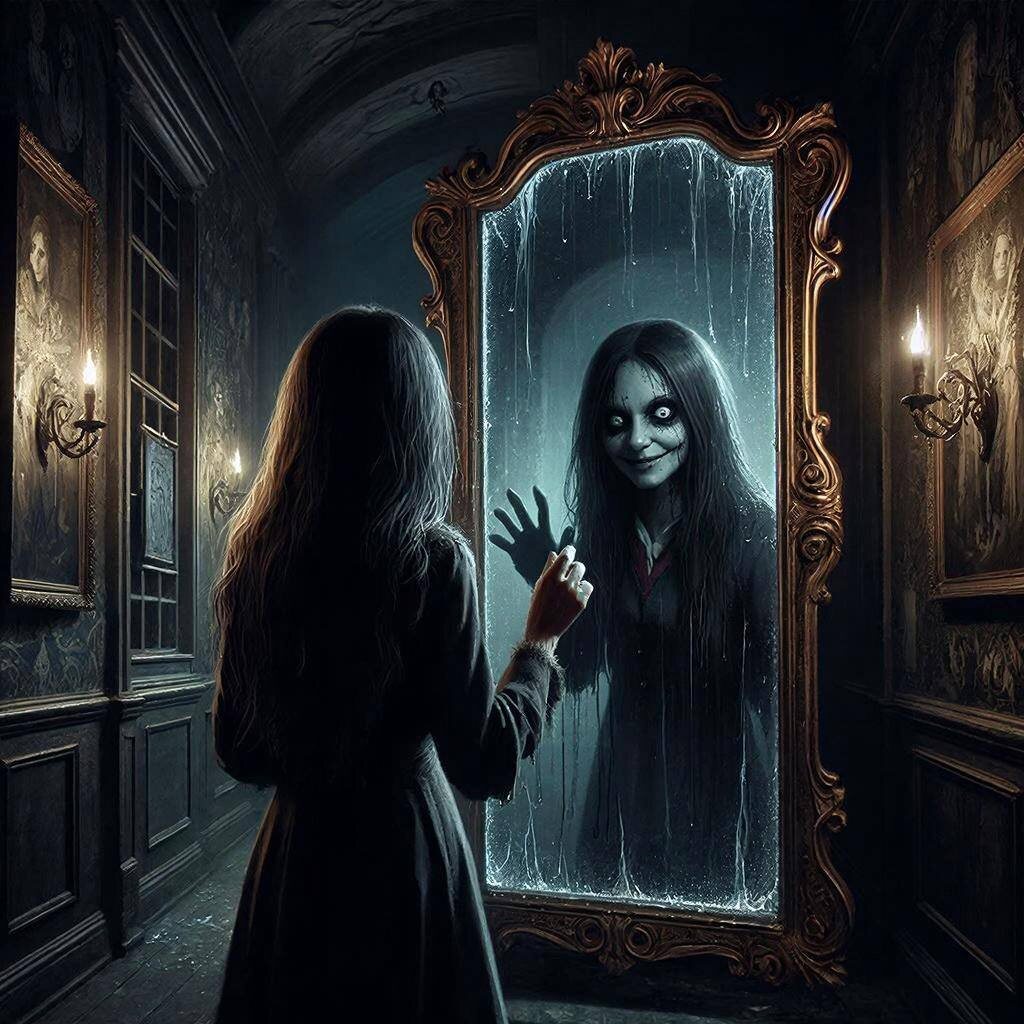 Однажды ночью Эвелин не смогла уснуть. Она пошла в коридор, чтобы ещё раз взглянуть на зеркало. На стекле уже не было обычного отражения. Там стояла тень, похожая на неё саму, но с глазами, которые не моргали. Тень подняла руку, и надпись на стекле медленно сложилась в предложение: «Хочешь изменить прошлое?»