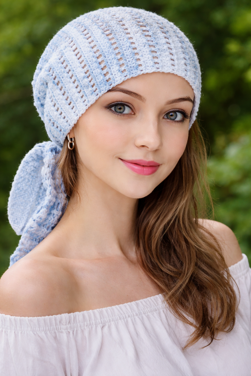 Обожаю такие косынки, они сейчас на каждом шагу, от Пинтереста до Ютуба. Но вот незадача - все вяжут по одной схеме, будто других узоров в мире не существует. Я решила пойти своим путем и придумала вариант, который не только выглядит интереснее, но и сидит удобнее, а в конце поделюсь секретом, какую пряжу выбрать, чтобы аксессуар не сползал в самый неподходящий момент. Начала я свою бандану с поперечной полоски. Это та самая деталь, которая будет идти надо лбом. Вязать ее поперёк - отличное решение, так проще контролировать длину и плотность прилегания. Я сделала основу шириной около 6.5 см. На мой взгляд, это золотая середина: и лоб красиво прикрывает, и завязывать потом удобно. Если сделать уже - будет похоже на шнурок, шире - начнет некрасиво топорщиться. Сама полоска у меня состоит из простых "окошек" - это обычная филейная сетка. По краям я пустила по два столбика с накидом, чтобы край держал форму и не растягивался в "соплю". В длину эта деталь вышла примерно 57 см. Этого как ра