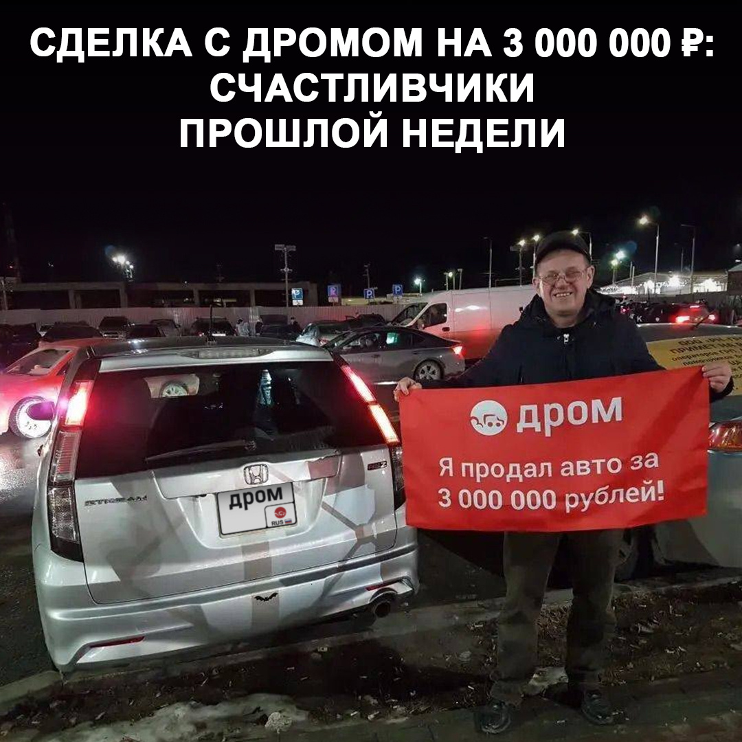 Среди счастливчиков есть как продавцы премиальных Infiniti или Range Rover, так и владельцы Четырок, старых праворульных «японцев» и даже Волги 1968 года! А по участникам Сделки прошлой недели можно учить географию страны: → Шандра, Темрюк, Ford Tourneo, 2007 год, 900 000 ₽ — продавал автомобиль вместе с отцом, чтобы достроить дом. → Влад, Ангарск, Subaru Forester, 2007 год, 950 000 ₽ — программист и активный комментатор Дрома, деньги пойдут на первый взнос по ипотеке. → Дмитрий, Эльбан, Toyota Allion, 2010 год, 1 020 000 ₽ — в планах купить кроссовер, но модель ещё не выбрана. → Ярослав, Новосибирск, Nissan Cedric, 1998 год, 480 000 ₽ — к звонку 1 апреля отнёсся скептически, но теперь планирует покупку семейной и более проходимой машины. → Рашид, Чаны, Geely GC6, 2014 год, 405 000 ₽ — деньги пойдут на трактор и Гранту для 76-летнего отца. → Станислав, Крым, Mercedes-Benz E-Class, 1996 год, 300 000 ₽ — ничего не знал про Сделку, но теперь уже присматривает себе новую машину. → Алексан