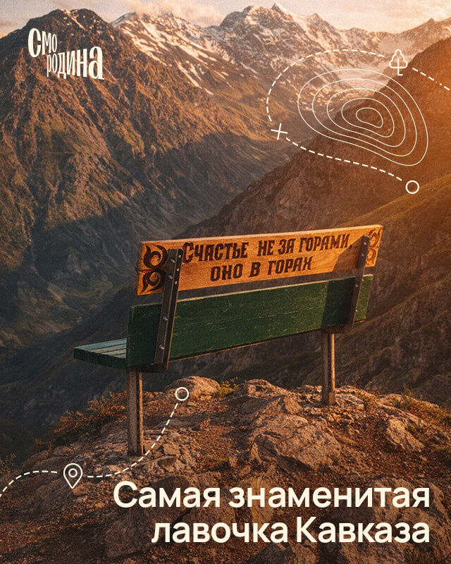 Какая красота! Рассказываем легенду о появлении легендарной лавочки в Северной Осетии. История скамейки связана с влюбленностью одного из гидов. Он установил скамейку на вершине горы и написал на ней: «Катя, я тебя люблю». Со временем его чувства охладели, и надпись пришлось закрасить. Скамейка осталась на своём месте, но на ней появилась новая надпись: «Счастье не за горами, оно в горах».