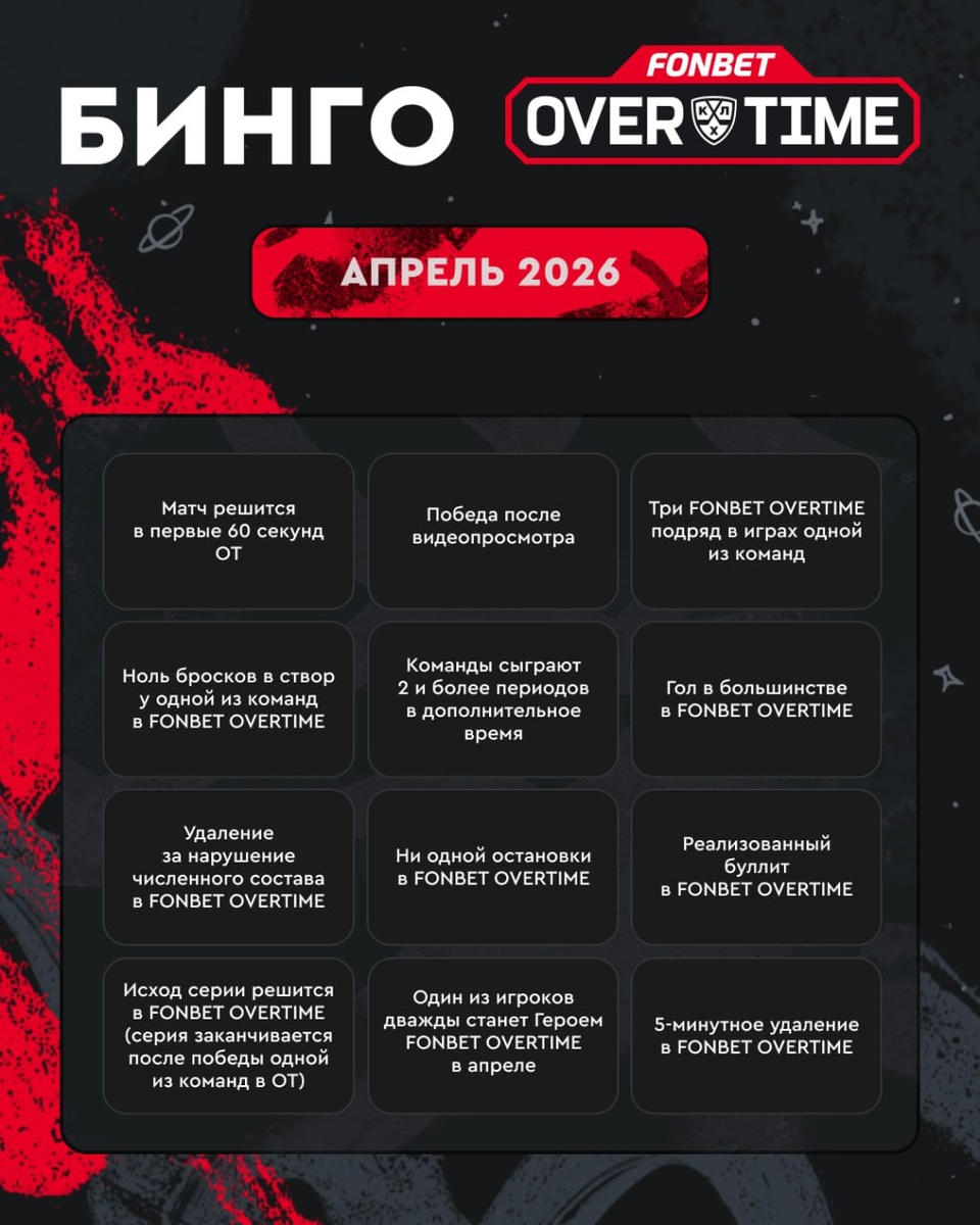 🚨! Выбирайте пять событий, в которых уверены, и следите за апрельскими матчами. Каждое угаданное событие принесет 10 000 баллов. А если сойдутся все пять — на счету окажется уже 1 000 000! Все правила бинго — на сайте проекта.