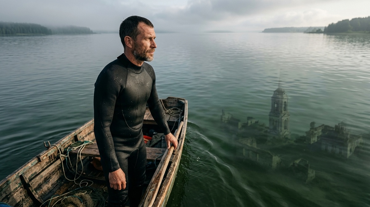 Я смотрел на него и думал. Вот человек. Только что побывал в месте, где не было ни одной живой души восемьдесят лет. И не на дне моря, где никого никогда не было. А именно там, где раньше жили. Где кто-то говорил, торговался за цену хлеба, ругался с женой. А потом — всё. Восемьдесят лет пустоты под шестью метрами воды.