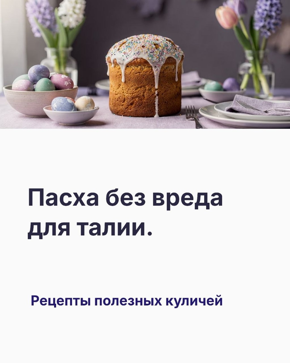 Совсем скоро Пасха. Праздник не должен означать скачок инсулина и лишние сантиметры. 📌 Я подготовила для вас три проверенных рецепта куличей — без сахара, без пшеничной муки высшего сорта и без угрызений совести. В карточках: ⏩ Мой фирменный творожный кулич с цукатами — нежный, влажный, очень вкусный. ⏩Кулич без выпечки на финиках и орехах, за 10 минут. ⏩ Кокосовый кулич с апельсином и орехами — без глютена, низкоуглеводный, почти кето. 📎Каждый рецепт — с пошаговым приготовлением и объяснением, почему это полезно. ➡️ Листайте карточки, выбирайте свой вариант и встречайте Пасху без вреда для здоровья и фигуры. 📌 А какой кулич планируете печь вы? Делитесь в комментариях.