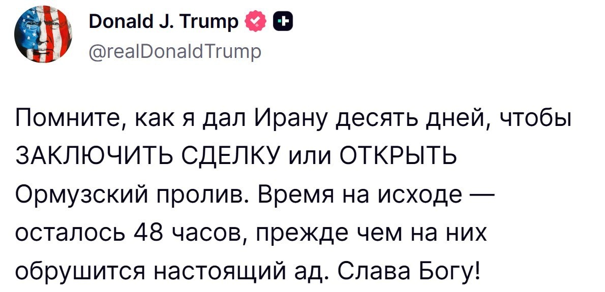 ⚡️ У Ирана осталось всего 48 часов до того, как на них обрушится настоящий ад! Как говорится, время летит, а проблемы не ждут