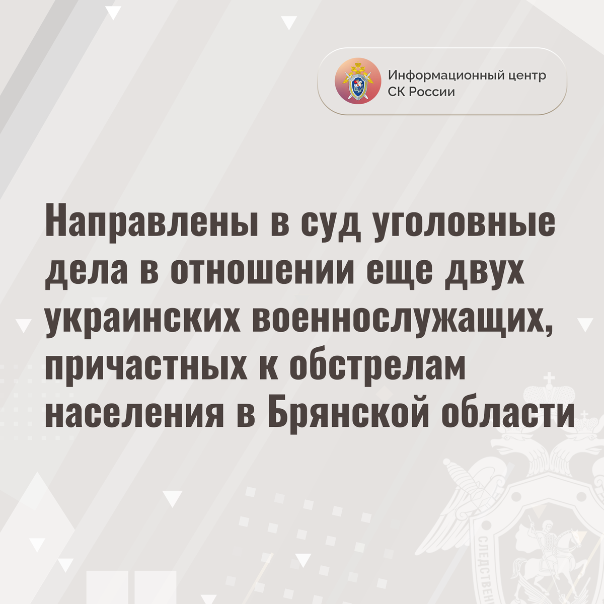 Направлены в суд уголовные дела в отношении еще двух украинских военнослужащих, причастных к обстрелам населения в Брянской области