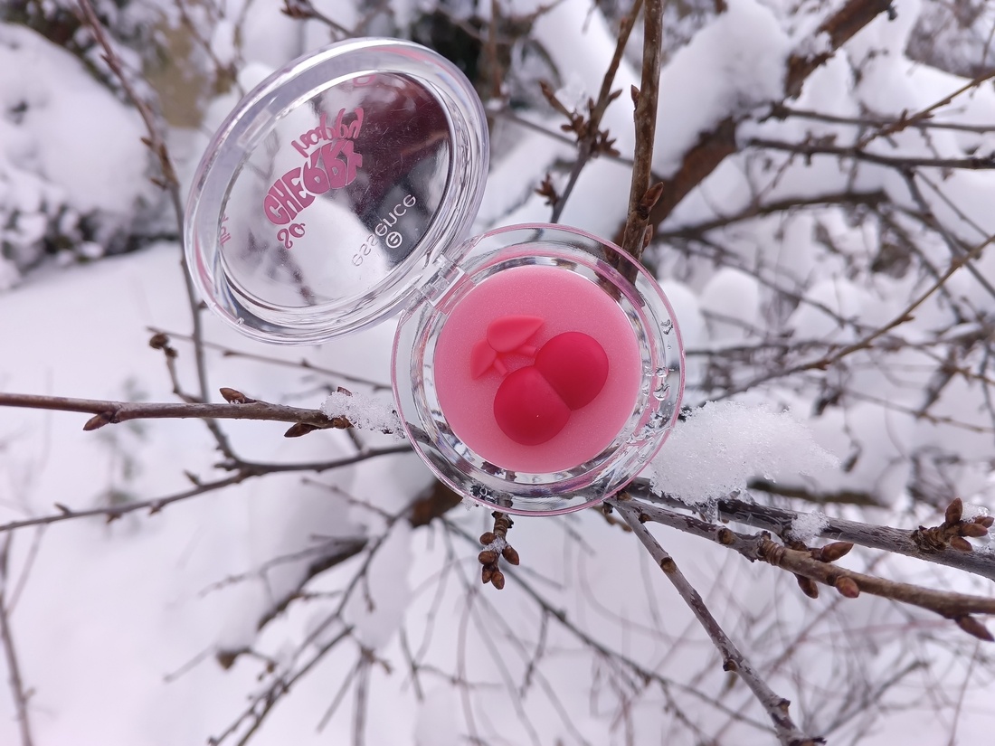 Добрый день! Я недавно ругалась на дурацкий блеск для губ Essence, а ведь куплен он был в череде удачных покупок бренда. Среди прочего у меня есть еще и такой бальзам для губ из лимитированной коллекции посвященной вишне. Упаковка конечно неудачная. Больше похожа на румяна, не удивлюсь, если многие путали. Просто прозрачная коробочка, таскать ее с собой я бы много не стала, Essence славятся хлипкими упаковками. Объем у бальзама 6,4 грамма. Пахнет очень приятно вишневой жвачкой. Бальзам выходил в единственном оттенке. И для меня это именно уходовое средство с декоративными плюшками. Основная часть — это нежно розовый бальзам с огромным количесвом средних по размеру голубоватых и серебристых блесток, я потом покажу их поближе. А в центре красные вишенки, они более маслянистые по текстуре и имеют небольшой оттенок. Вот тут блестки отлично видны. Лучше всего их видно именно в дневном свете, в остальном освещении они блекнут. На свотче ниже я показываю оба оттенка, слева едва заметный розов