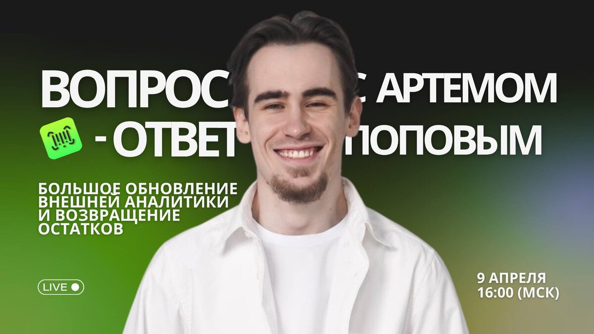 Мы полностью переработали модуль, но у многих всё ещё остаются вопросы: ⚫️ как находить товары с потенциалом, а не заходить в перегретые ниши? ⚫️ как анализировать весь рынок, а не только верхушку выдачи? ⚫️ как быстро собирать нужную выборку под свою задачу? Теперь аналитика – это не просто цифры, а инструмент поиска точек роста. Разберём, как этим пользоваться на практике. Покажем: – как искать товары для запуска – как анализировать структуру категории – как находить ценовые зазоры – как читать рынок через данные И, конечно, ответим на любые вопросы по сервису 👇 🗓 Четверг, 9 апреля, 16:00 (МСК) 🔗 Ссылка на подключение Пишите свои вопросы в комментариях – разберём самые важные ⬇️ #Вебинар
