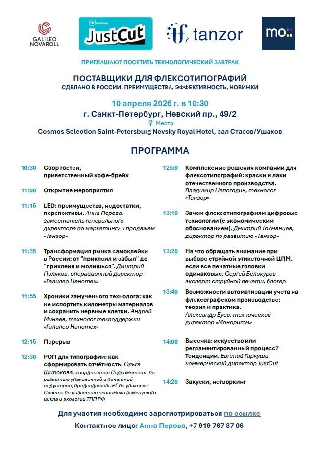 Технологический флексо завтрак в Питере уже 10 апреля. Не пропусти!