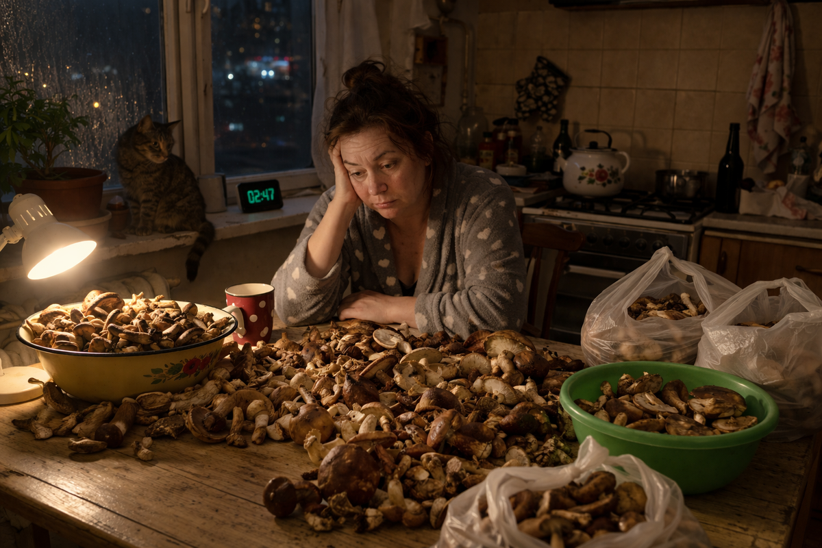 А реальность — это тридцать килограммов мокрой лесной плоти, которую надо перебрать до рассвета, потому что завтра рабочий день и пора сдавать квартальный отчёт.