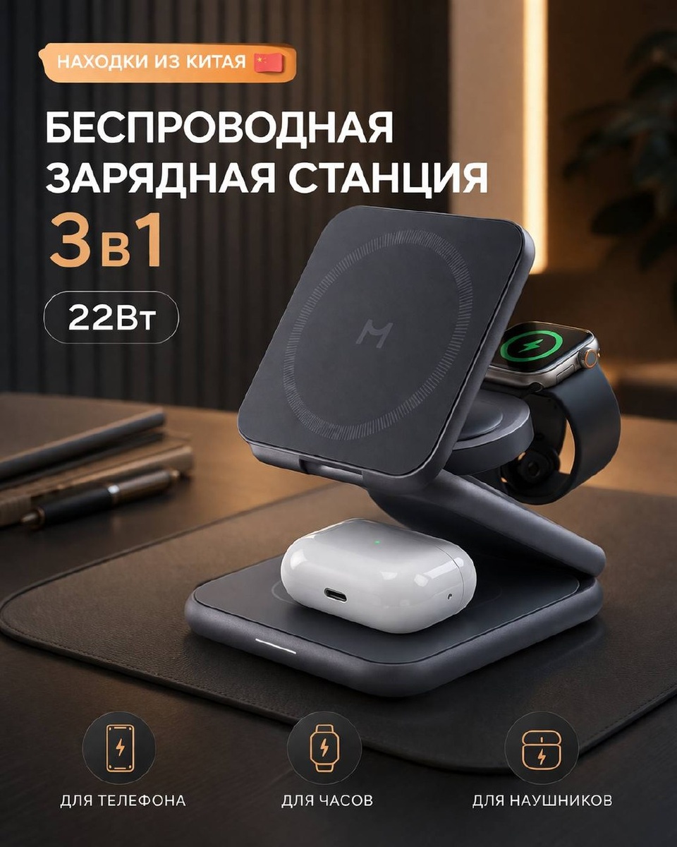 🇨🇳 Беспроводная зарядка 3в1 Одна зарядка сразу для телефона, часов и наушников Очень удобная вещь для рабочего стола или тумбочки — никаких проводов, всё стоит на одной станции и аккуратно заряжается Такие зарядки часто заказывают из Китая, потому что там они стоят в 2–3 раза дешевле, чем в магазинах Подходит для: ✔️ iPhone и других телефонов с беспроводной зарядкой ✔️ Apple Watch ✔️ AirPods Компактная, складная — удобно брать в поездки Если нужно привезти товар из Китая — пишите, поможем с доставкой 📞 телефон: +74957773334 🟢 WhatsApp: +79206930427 📧 почта:info@zoomlogistic.ru 🌐 сайт: www.zoomlogistic.ru