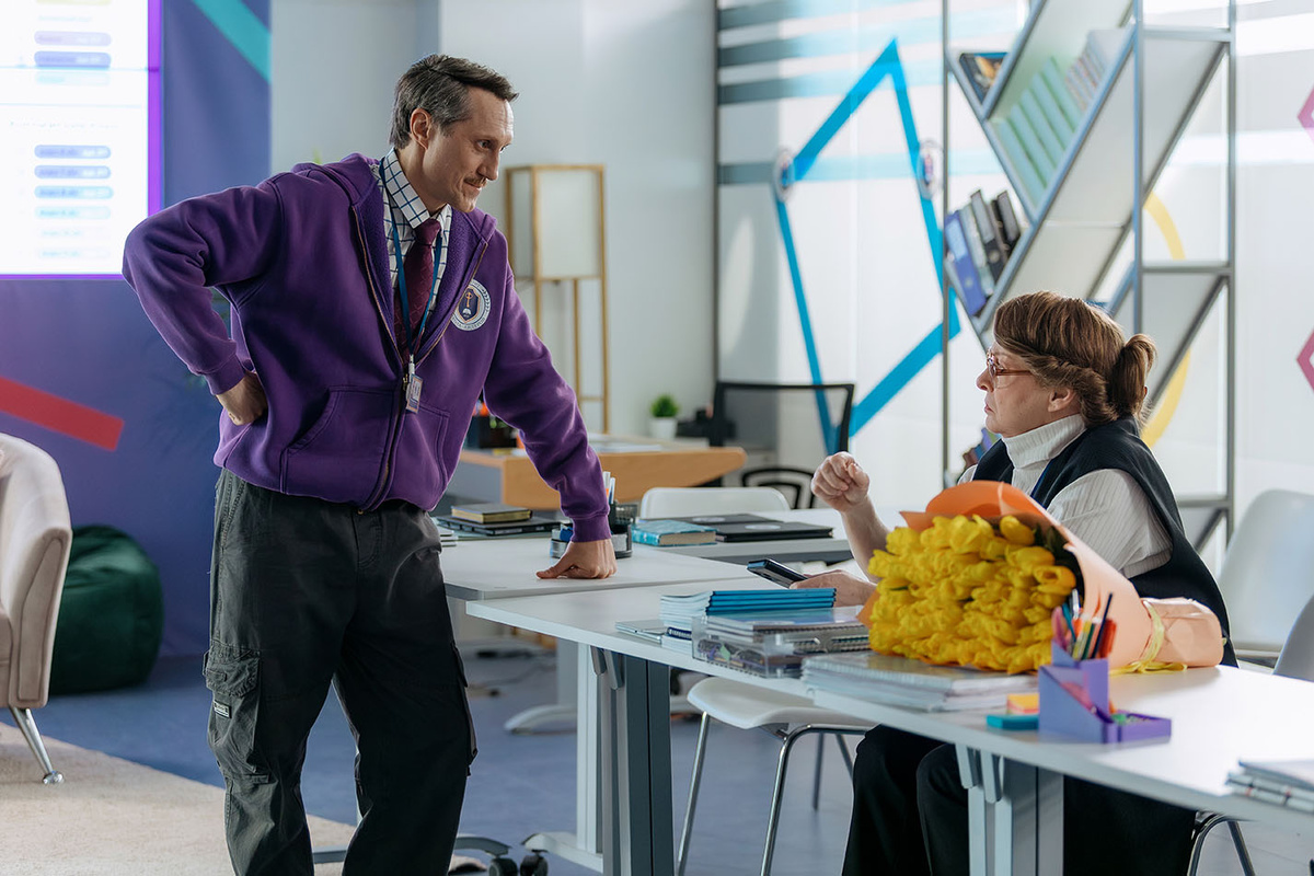 Игорь Хрипунов и Мария Аронова кадр со съемочной площадки 2-го сезона сериала «Олдскул» Детали сюжета нового сезона не раскрываются. Мы знаем лишь, что Мария Аронова («Праздники», «Бременские музыканты») вернется к роли суровой учительницы математики Марии Павловны. Как и прежде, она будет пытаться лучше понять мир современных подростков в целом и свою внучку (Таисья Калинина, «Тоннель», «Как приручить лису») в частности. Кроме того, героиня Ароновой будет стараться наладить отношения с дочерью Натальей (Надежда Жарычева, «Опасная близость», «Красный 5»). Не совсем понятно, останется ли Наталья в школе «Фаворит» в качестве завуча, но ее отношения с учителем английского языка Бояном (Дэниел Барнс, «Москва слезам не верит. Все только начинается», «Оптимисты») будут развиваться, причем в неожиданном направлении. Возможно, она станет частью любовного треугольника с участием бывшего мужа (Роман Маякин, «Сергий против нечисти», «Кулинарный техникум»). Надежда Жарычева кадр со съемочной площа